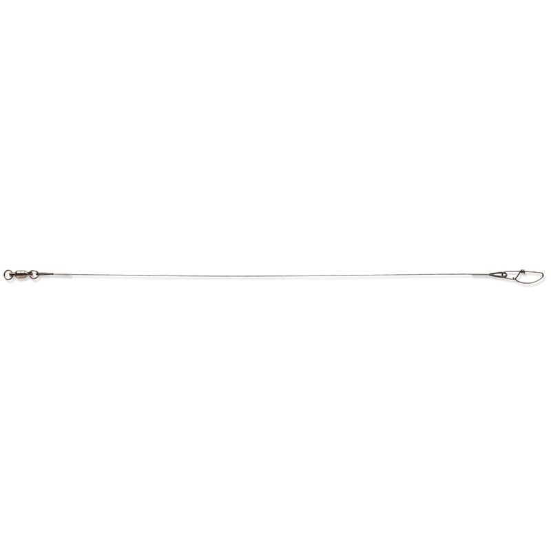 This premium titanium leader features an extra strong and light braided titanium wire leader with a premium ball bearing swivel and unique Touch-Lok Snap. This strong, light and ultra-thin snap offers “easy on – easy off” lure replacement, but ensures exceptional locking strength, thanks to its unique design. Titanium resists cutting and kinking and coiling extending the life of this premium leader plus it gives your lure the best presentation and action cast after cast. One piece per pak.