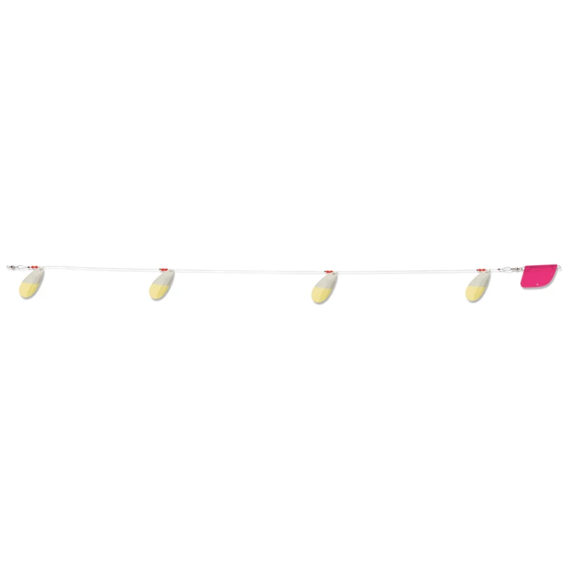 The Cowbell is Luhr-Jensen’s most popular lake troll and perhaps the most productive troll in the world. Its unique blade design produces an awesome fish-calling vibration while Luhr-Jensen premium plating and polishing of the blades offer maximum flash. You’ll draw fish from greater distance, and produce more strikes with Cowbell trolls in your spread. Cowbell trolls come completely rigged with flexible cable rigging, trolling rudder and a selection of blade sizes and troll length.