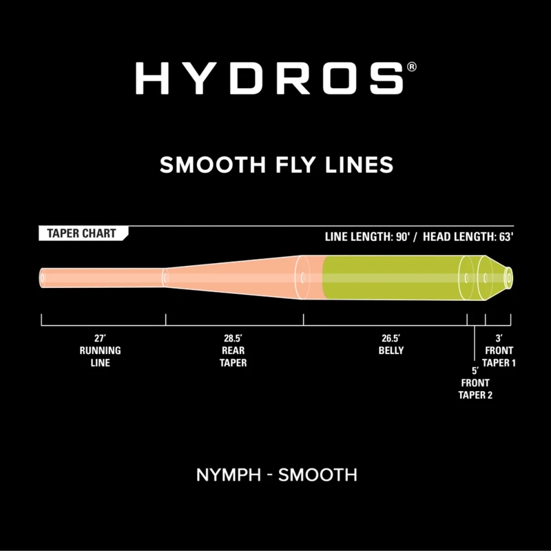 The Hydros Nymph fly line is specifically designed to handle heavier nymphing rigs. The powerful head helps turn over multi-fly rigs, and the long belly allows for easy on-water line management. Smooth coated line with AST patented dry-slick technology provides continual line protection and slickness. Dual welded loops for easy, seamless connection to backing and leader. Orvis Line ID for quick and easy identification. Braided multifilament core for cold to moderate water temps.