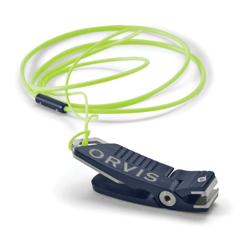 The Orvis Nipper is not your ordinary fly-fishing nipper. Patented design is made in the USA of machined 6061-T6 aluminum; these nippers incorporate a piano-style hinge that adds mechanical advantage for easily cutting anything from 80-lb. to 8X tippet. Replaceable cutter and anvil offer excellent corrosion resistance and edge retention. Ergonomic contour for comfort and enhanced function. Type III military-spec anodized. Stainless steel rotating hook-eye cleaner. Comes with lanyard made from fly line.