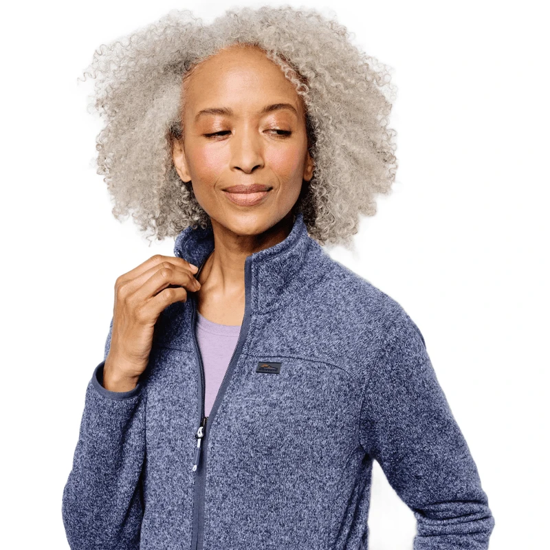 Sweater knit with an oh-so-cozy brushed interior, the Recycled Sweater Fleece Jacket is eco-friendly layering done right. Made from recycled polyester, Orvis’ new fleece helps divert post-consumer plastic from landfills and waterways. Even the Natulon YKK zippers on the front and two side pockets sport teeth made from recycled plastic, and the zipper trim uses yarn made from GRS-certified (Global Recycling Standards) suppliers. Orvis added princess seams to define your figure but omitted the shoulder seams for greater comfort while carrying a pack or bag. Finished with a hi-low hem. Active fit.