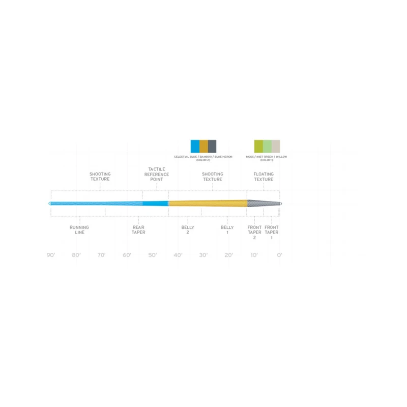 | ITEM NUMBER BLUE BAMBOO HERON | ITEM NUMBER MOSS MIST GREEN WILLOW | LINE WEIGHT | HEAD LENGTH | TOTAL LENGTH | GRAIN WEIGHT* |